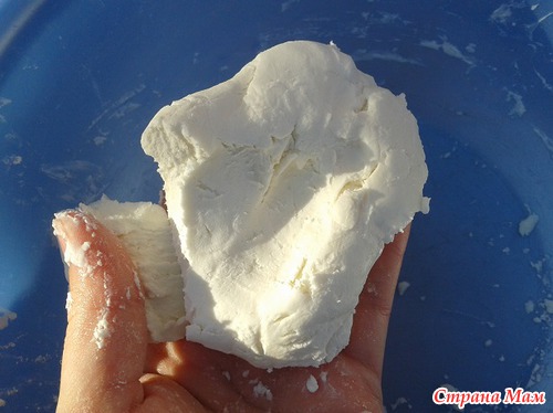 Смешала кукурузный крахмал и кондиционер для волос (лучше менее пахучий). получилось вот такое "тесто"