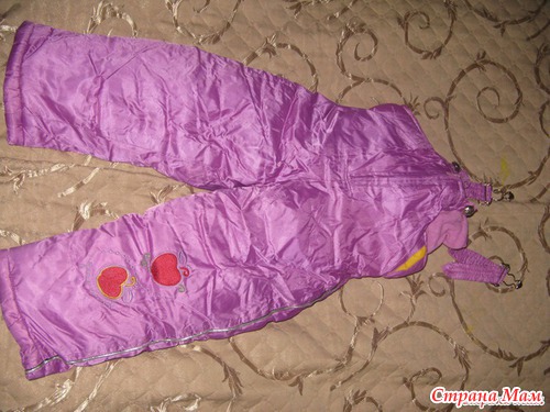 Продам зимний костюм (куртка и полукомбинезон) фиолетового цвета с аппликацией на худую девочку. Нам подарили, но мы элементарно не влезли - ребенок у меня не из худышек. Длина штанин полукомбинезона 35 см, длина по спинке 73 см. Длина куртки 42 см, длина рукава 38 см. Новый, но перешита молния - поломалась. Цена 450 руб + пересылка до вас