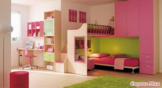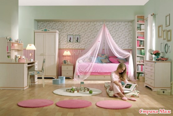 А оттенков у розового много. Это и лиловый, и персиковый, розовый теплый и розовый холодный, пастельный, розово-бежевый. Он дает изумительные сочетания с другими цветами, сочетаясь практически со всеми цветами спектра, от классического бело-розового решения до авангардного розово-салатового. Смотрите подборку детских комнат в розовых тонах...[MORE]...