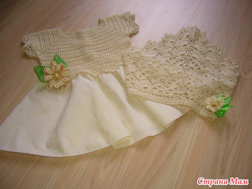 Мой первый крестильный комплект и моё первое комбинированное платьице, нитки виолет, ткань сатин: