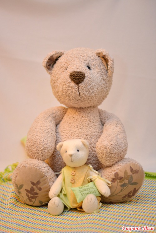 , как-то очень быстро в этом году похолодало. Поэтому сошлись с мужем на том, что подарим подушку, маленького медвежонка (маме), и большого медведя малышу
