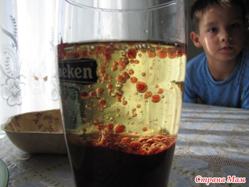 Подсолнечное масло, фруктовые соки, шипучие таблетки аспирина, два сосуда