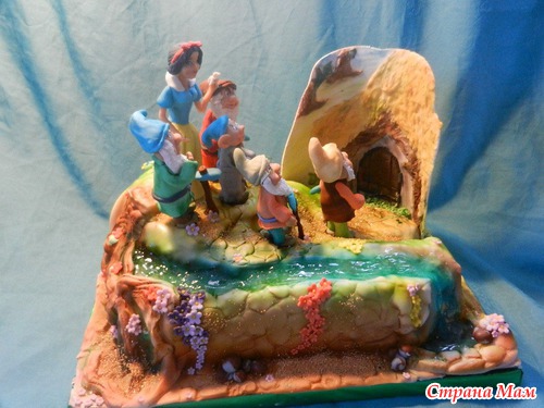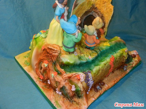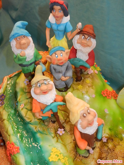 Приветик!... еще один тортик с Белоснежкой... заказчица как сказала что ей надо 4.5 кг и в 2 яруса... так я сразу стала уговаривать на тематический тортик... она конечно согласилась.. но до последнего не могла понять что это такое... но а я чуть разгулялась... Тортик красила аэрографом... стеночка из пастилажа... вес с фигурками вышел 5 кг... вот только опять не недочет.. короче говоря косяк...