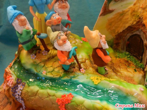 Приветик!... еще один тортик с Белоснежкой... заказчица как сказала что ей надо 4.5 кг и в 2 яруса... так я сразу стала уговаривать на тематический тортик... она конечно согласилась.. но до последнего не могла понять что это такое... но а я чуть разгулялась... Тортик красила аэрографом... стеночка из пастилажа... вес с фигурками вышел 5 кг... вот только опять не недочет.. короче говоря косяк...