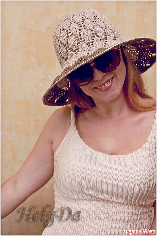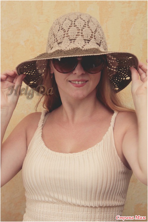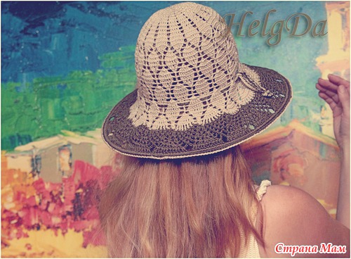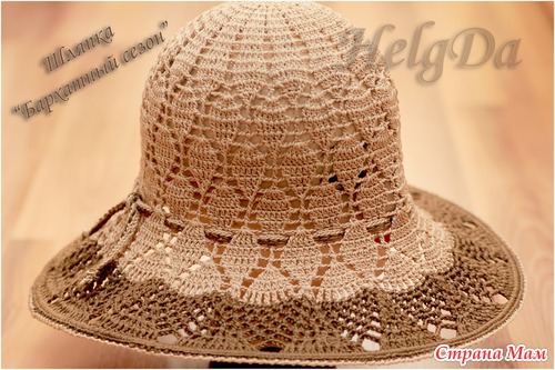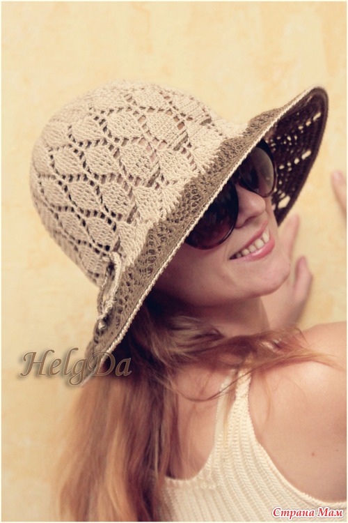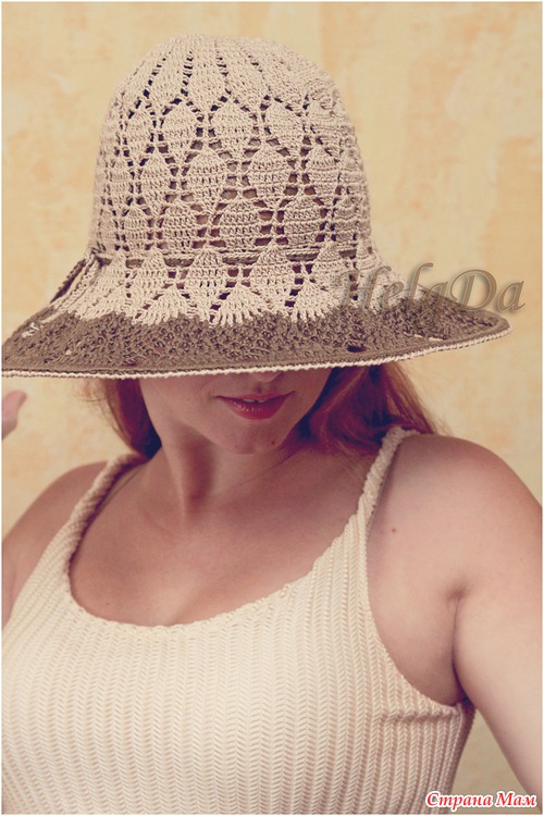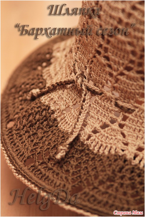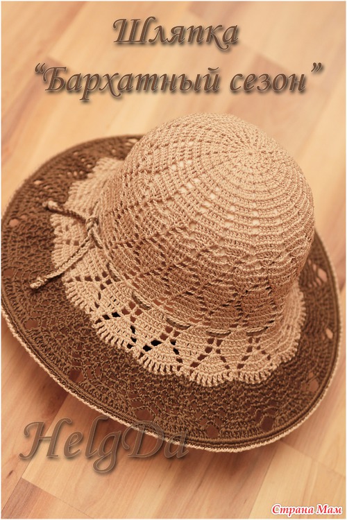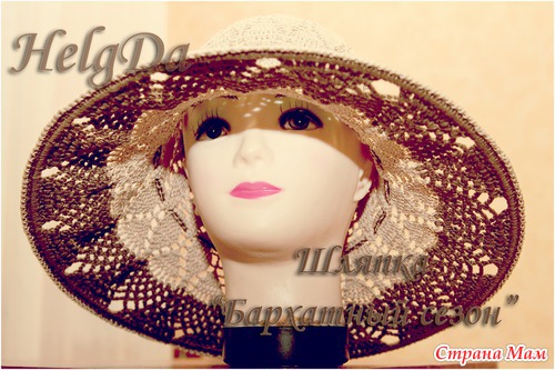 Шляпка для отдыха в бархатный сезон с одноименным название "Бархатный сезон", связана для родственницы, которая завтра едет на море. Ниточки вита роуз (150 м на 50 г)-бежевые, а темная пряжа из старых запасов, метраж примерно 230-250 м на 100 г, крючок № 1.5, в поля ввязаны три жилы регилина. Шляпа связана по схемам Ирины Neustedt miss1512 с осинки.