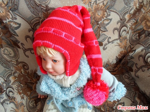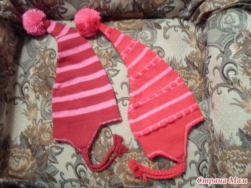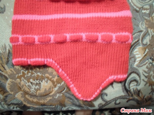 А к внутреннему полотну провязала еще 30 рядов, и пришила открытые петли с изнанки к наружной шапочке.