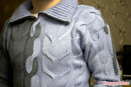 Здравствуйте, дорогие вязальщицы, хочу показать вам любимый свитер моего мужа, который я связала ему два года назад. До сих пор носит с удовольствием. Описание найдено на осинке, там есть и отдельная он-лайн тема посвещенная этому свитеру http://club.osinka.ru/topic-70519. Воротник с молнией делала сама, без описания.