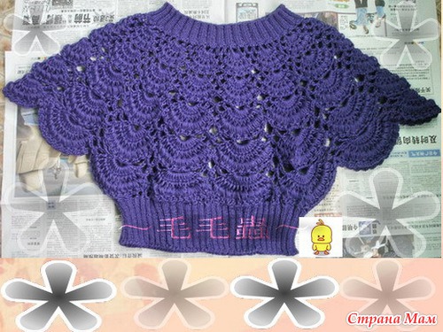 Тэги: кофточка крючком, ажурный узор, круглая кокетка, крой ", летучая мышь"