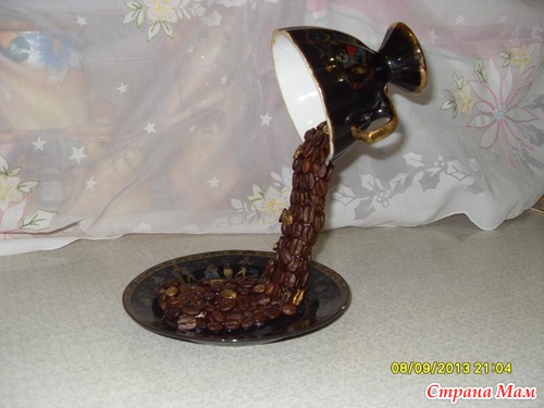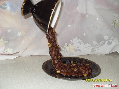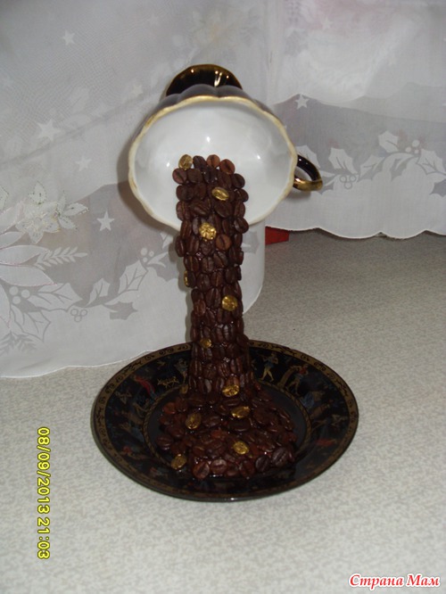 Кофейные зерна так же клеила с помощью термопистолета (горячего клея)