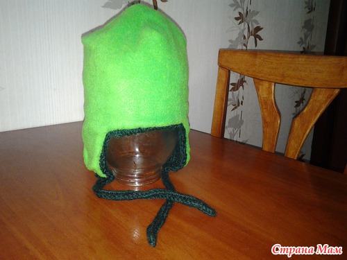 потом, посмотрев на обе шапочки, подумалось, что они получились тепленькие, это плюс, но все таки продуваемые, поэтому, покапавший в своих запасах, о чуда нашлось подходящее. К прошлому новому году, для поделок было куплено по 40 см. ткани, вот правда не помню как называется, но похожа на флис, мне ее посоветовали в магазине так как при раскрое она не сыплется и очень удобна для поделок. И тут мне опять повезло, было куплено три цвета, белый, салатовый, и красный, два их которых я и использовала. По моему получилось неплохо. А самое главное они получились тепленькие, и еще один плюс, для старшенького, ее можно не завязывать и ушки все равно прикрыты