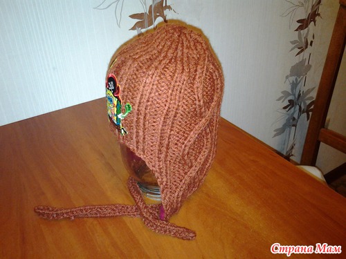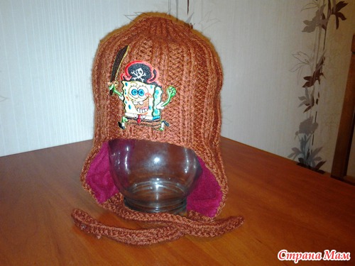 данная шапочка была задумана, как шапочка на ребенка 9-12 месяцев, и схема была взята соответственно такая же, однако, из-за того что пряжа у меня был толстоватая (100 гр. 133 м.) и спицы № 4,5, то когда связалась, получилось что она как раз подходит старшему сынишке 3,7 года