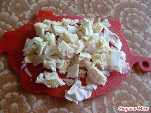 Нарезаем капусту на квадратики, примерно 1смх1см