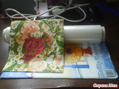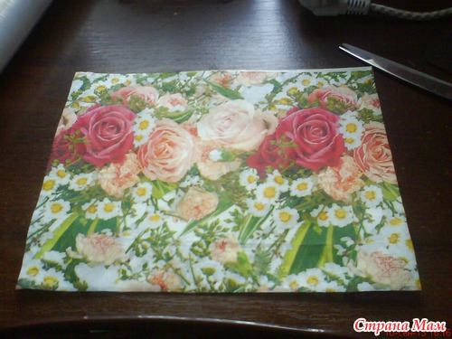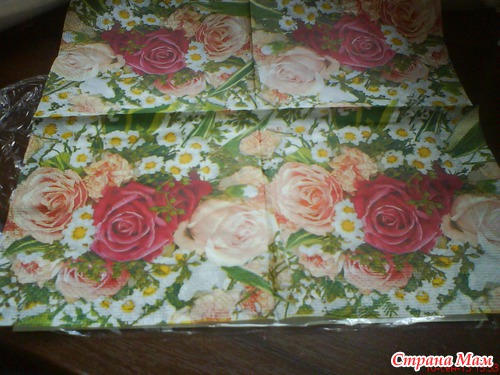 на пленку салфетку(только цветную часть, все белые слои снимаем, как на декупаж)