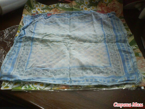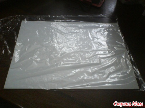 И так нам понадобится белый картон, клеенка или кулек или пленка, салфетка цветная. марля или любой кусочек ткани, Утюг.