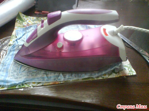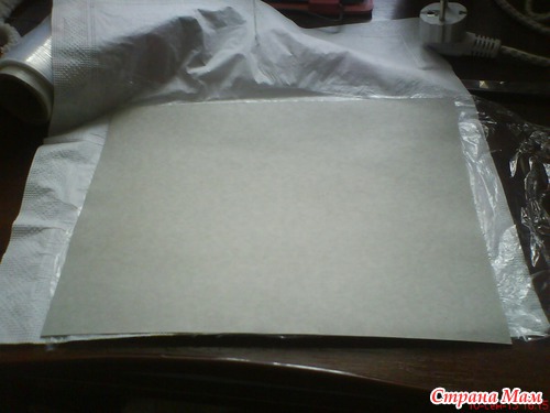 На салфетку кладем марлю(что бы не испортить утюг, если пленка пройдет )