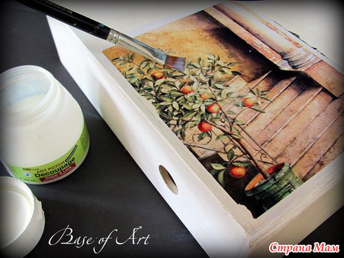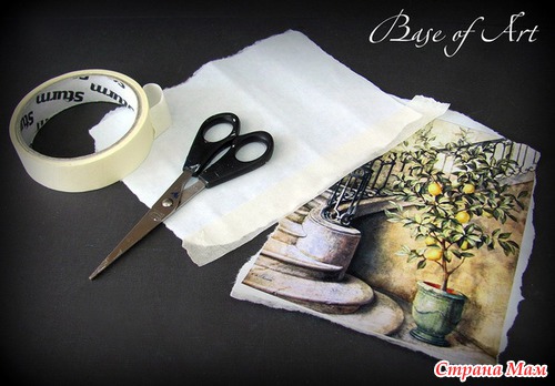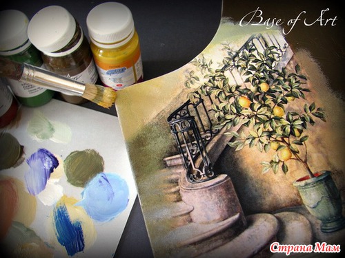 Сегодня мы выбираем для декора карту "Mural" от “Base of Art” с насыщенным итальянским колоритом. Апельсиновые и лимонные деревья в вазонах стали узнаваемым элементов средиземноморского побережья. А по фэн-шуй это исключительно благоприятный символ, приносящий удачу. Вооружившись декупажной картой и позитивным посылом, приступим к декору. Мы научимся делать настоящую итальянскую фреску.