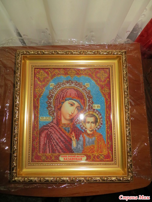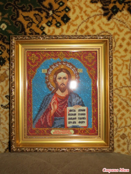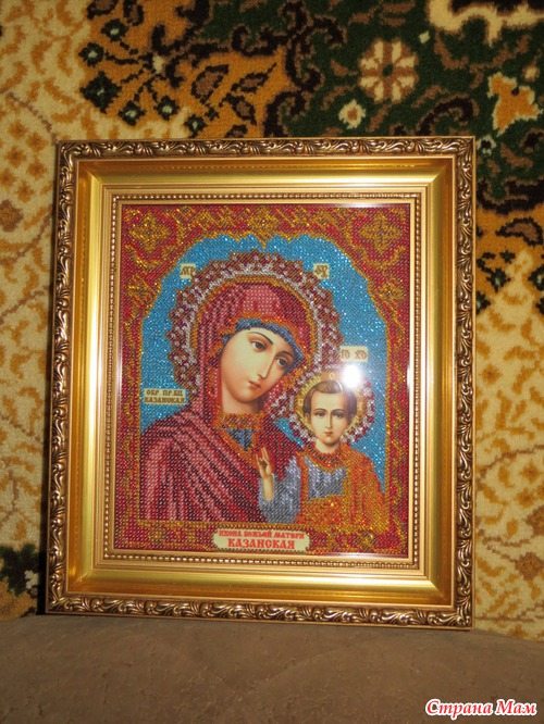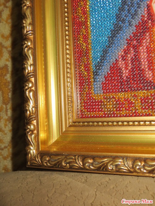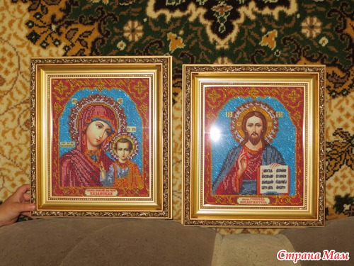 Работы (после освящения -это уже будут иконы) моей мамочки! Мамочка очень старалась! Вышивка бисером -самоподбор, размер 24 на 26 (без рамки). В багетку оформлять носила я. Как Вам рамка?