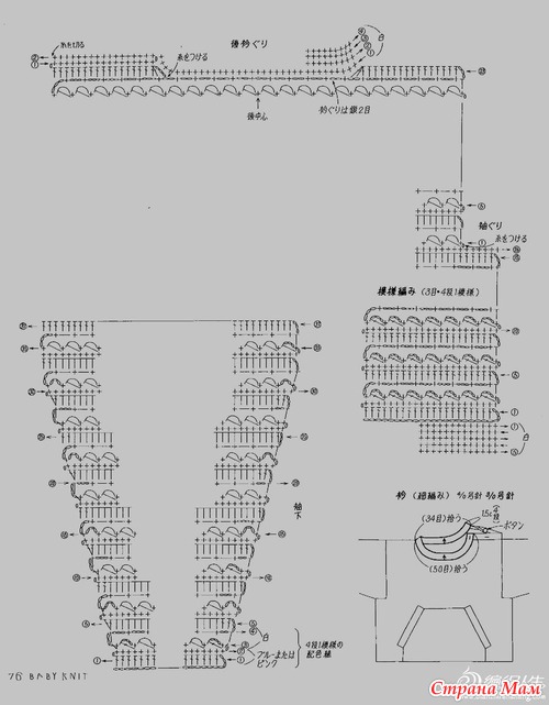 в каждом р. 3 раза по 2 п. = = 49 п. На общей высоте 37 см закончить вязание.