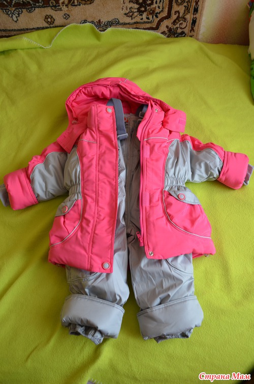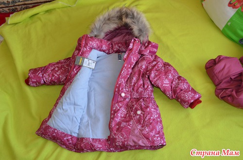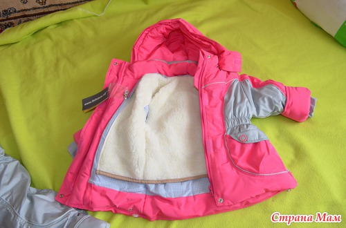 Комплектик для доченьки постарше шёл, наоборот, без подстёжки, но с енотовой опушкой - что, опять же, мне очень нравится, так как эта доча будет много двигаться на прогулке, на месте не усидит