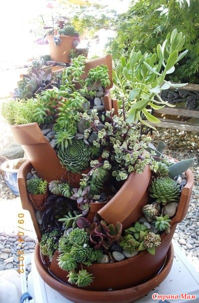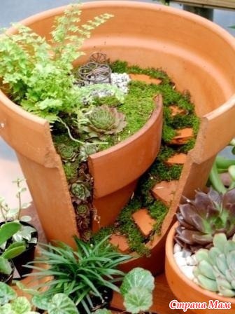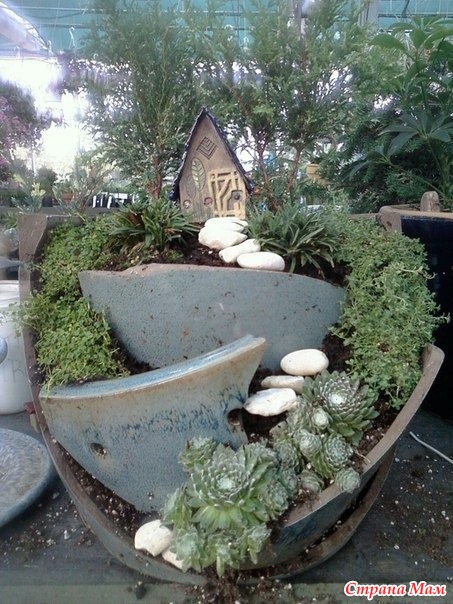 Даже если ваш цветочный горшок разбился, не спешите его выбрасывать. Очень красиво смотрятся цветы в разбитых горшках!