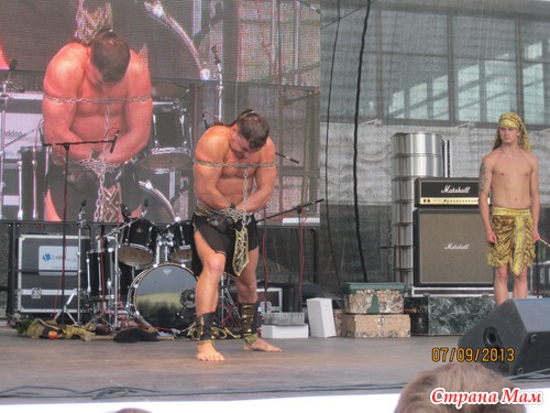 Прямо в моем вкусе! Я даже про мужа забыла, все щелкала фотиком. Вот он на фото. Сначала он ломал большие гвозди, а потом рвал цепи. Я стояла близко, и видно было, что у него прямо следы от цепей остались.