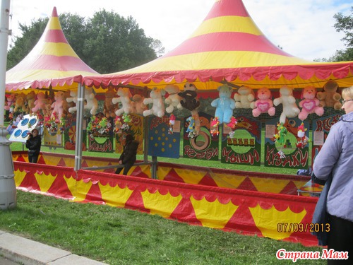 Ну а поскольку у меня-то выходной, решили мы это дело совместить - он работает, я гуляю и наслаждаюсь выходным. Погода хорошая, на территории ДДЮТ всякие развлечения для детей разных возрастов: