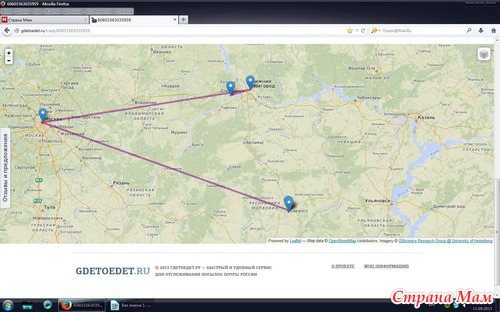 Вот например последняя посылка была отправлена Нижнего не прямым поездом с, который, ходит ежедневно, а через Москву (+ 800 километров)
