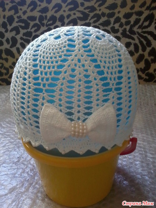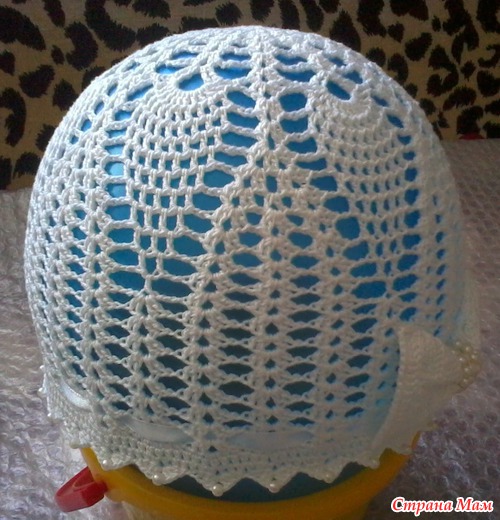 Вязала панамку из пехорки ажурной (100% хлопок, 280м/50г), понадобилось чуть больше половины моточка. Крючок мой любимый китайский, № 1,4. На отделку - бусинки под жемчуг и атласная ленточка.