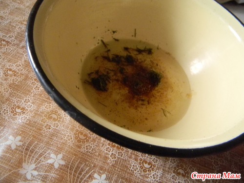 Для этого берём немного растительного масла, соль, смесь перцев, укроп.