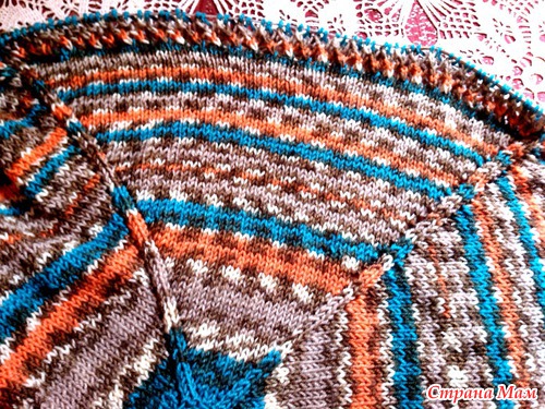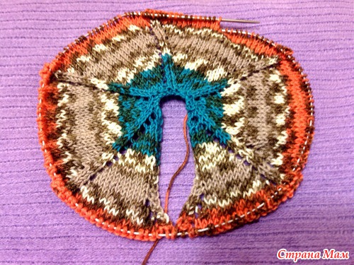 После сиреневой полосы вяжем по рисунку до нужной высоты.