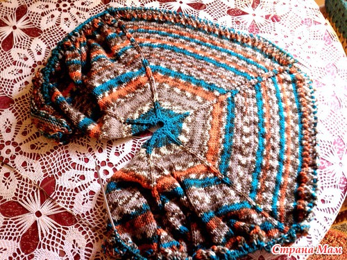 Нитки: Lanoso Bonita Etnik, 49% шерсти, 51% акрила. в 100 гр. 300 м. Вроде не совсем тонкие, но в процессе вязания, поняла, что буду вязать не 49 основных рядов, а 69.