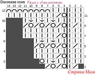 Повторять эти 12 рядов пока не останется 3 петли перед маркером в 11-ом ряду(ЛС).