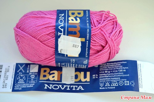 На неё ушло 150 г тёмно-розового и меньше 100г светло-розового цвета. В целом мне нравится, но в другой раз я бы такую нитку не купила.