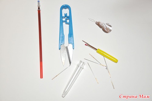 а это ниточки и плюсом ножнички иголки и стержень и еще какая то штуковина непонятная(это та что желтой ручкой)