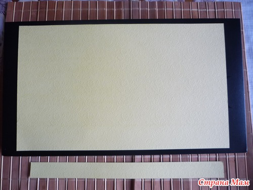 Ту, часть, которая по-больше обклеиваем по периметру полосой черной цветной бумаги шириной 3 см.