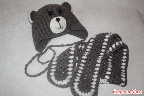 Пряжа Лана Голд, крючок № 3,5, собрала из инт-та фото понравившихся шапок-мишек,