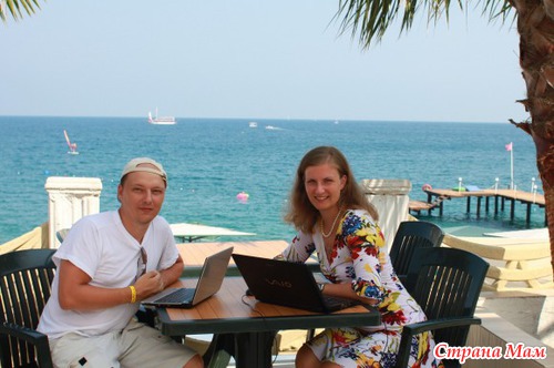 Почти все фотографии из отпусков такие – сидят Даниловы за двумя ноутбуками, «починяют Правмир».