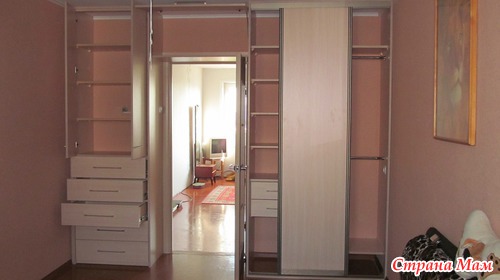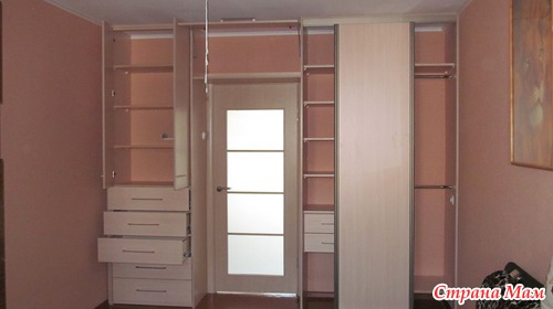 Мы с мужем такой в спальне сделали...я столько инфы перелопатила - очень хотела угловой, но пришла к выводу, что он много "съест" углового пространства бесполезно, а комната и так небольшая. остановилась именно на "шкафе вокруг двери" - и не пожалела))) нарисовала шкафчик, придумала "раскраску" - у меня был "бзик" на сочетании материалов двух цветов... рассчитала наполнение, измерив все свои вещи, которые хотела в него впихнуть, в т.ч. утюг, гладильную доску, пылесос и прочее. не забывая, что надо впихнуть ещё и невпихуемое - мои запасы тканей, пряжи и прочих потенциальных делок-переделок... размеры рассчитала всех деталей, сколько всего нужно дсп... купили дсп сколько нужно (мужичок на рынке только ржал над нами, когда ему я размеры говорила, сказал, что обязательно приедем докупаться - приехали, дсп понравилось, делали из него почти всю мебель в доме потом). Муж напилил, заторцевали и собрали вместе)))