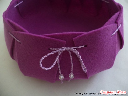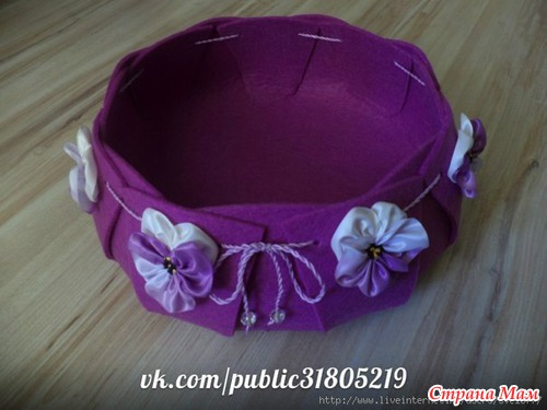 Ой, какая симпатичная получилась вещица! Очень просто, даже можно и не из фетра сделать, а из плотной пальтовой ткани, наверное? А донышко укрепить плотной проклейкой.. О! Какие сразу идеи возникли! Замечательно, когда одна идея порождает сразу много других! Спасибо!!