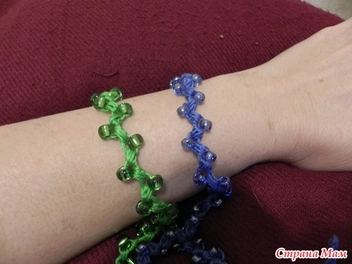 Вот связались пробные бусики! Доча отобрала себе зеленые и попросила браслетик в комплект