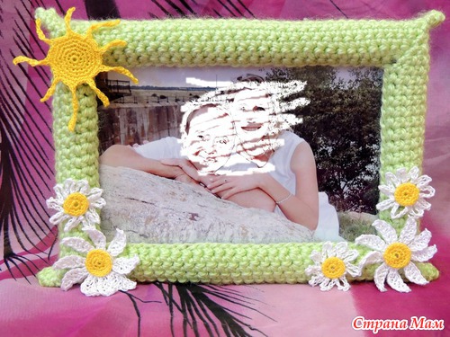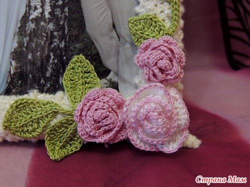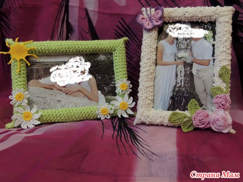 Очень хотела сделать подарок друзьям на свадьбу своими руками. Заглядывалась на красивые открытки и фоторамки в технике скрапбукинг, но не оттуда у меня руки, слишком сложно для меня. С крючком, вроде, дружу. Вот и решила связать фоторамочки. Вернее, сами рамочки покупные, а вот декор для них - связала.