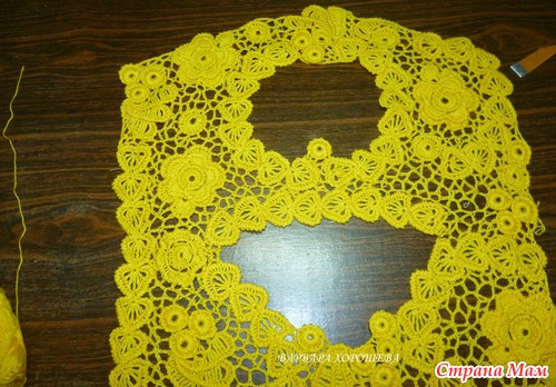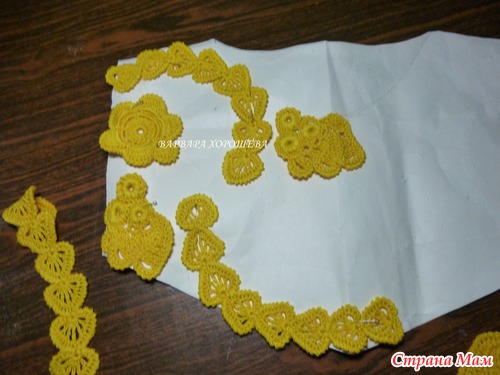 Заказчица попросила сделать кружевную кокетку для своего будущего сарафана из ткани...