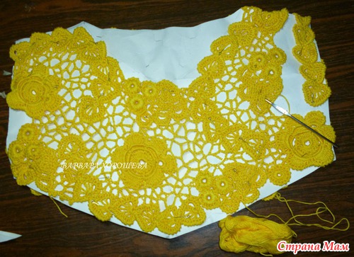 Не могу продемонстрировать сарафан вместе с кокеткой, поскольку свою часть работы я выполнила, а шитьем уже занимался другой человек...