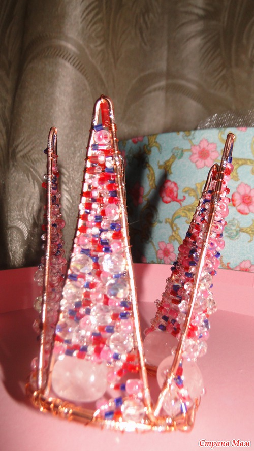 Комплектик "Вероника": корона и букетик, сделаны из проволоки для плетения (Алюминий) 1мм, 2мм и 0,3 мм, использованы для декора бисер, бусины граненные и бусины розового кварца, а так же цветы из органзы Читать полностью