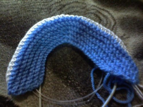 1. Набираем 35 петель и вяжем платочной вязкой, прибавляя по краям и по обе стороны от центральной петли( по одной петле, через ряд - 3 раза). Должно получиться 47 петель: