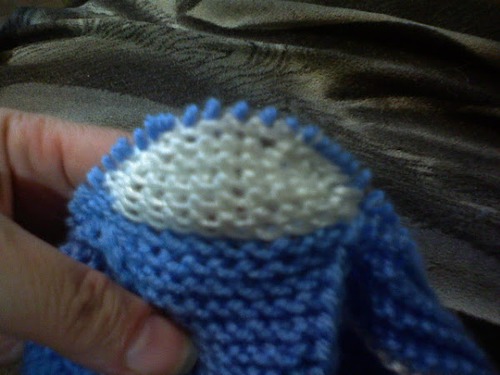 4. Начинаем вязать носик пинетки по"принципу пятки"т. е., провязываем 18 петель, потом ещё 10, а одиннадцатую петлю вяжем со следующей из 18-ти. Поворачиваем работу. Вяжем так, пока по краям останется по 11 петель.: