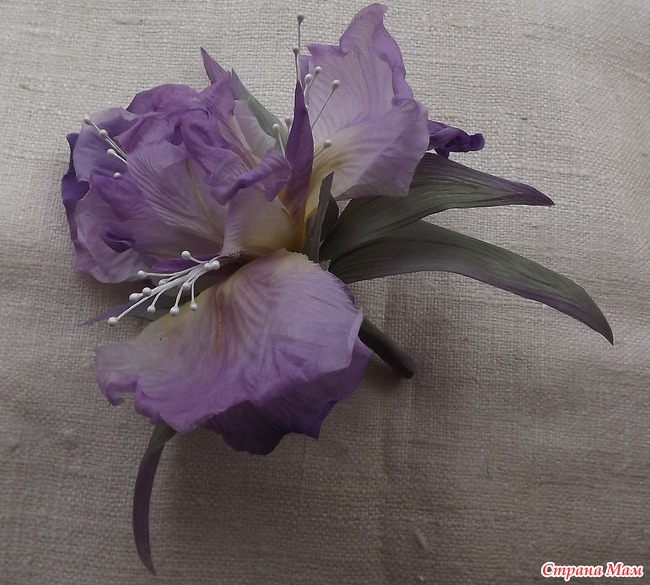 Брошь в виде Ириса выполнена из натурального шелка. Возможно исполнение в другом цвете. Цена 1200 руб.