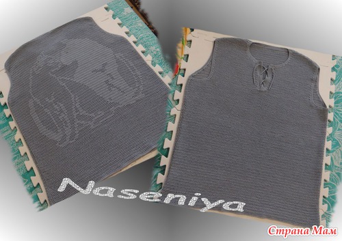 Задумывалась маечка просто сеточка, однако процесс показался скучным вот и решила сориганальничать и на спине появились кошки