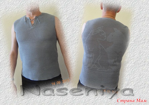 Ну вот я и осилила свою первую работу для мужа! Ох и долго ж я ее вязала!!! И не потому что сильно трудно, просто времени на любимое дело все меньше... Результат порадовал не сразу (хотя мужу понравилось уже в процессе), а после стирки и отпаривания..