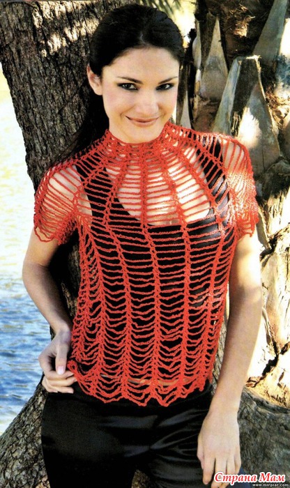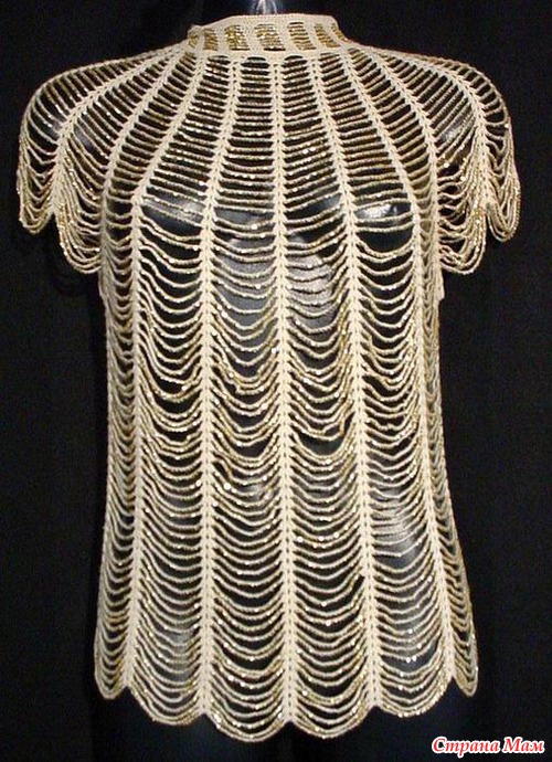 *Праздничный блестящий топ, связанный крючком от горловины